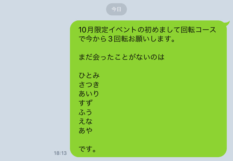 ②まだ会ったことがない女の子の名前とご希望の回転数をLINEで送ってください。